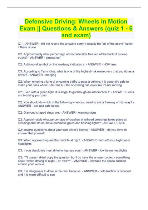 Read Online Wheels In Motion Defensive Driving Answers Kindle Editon