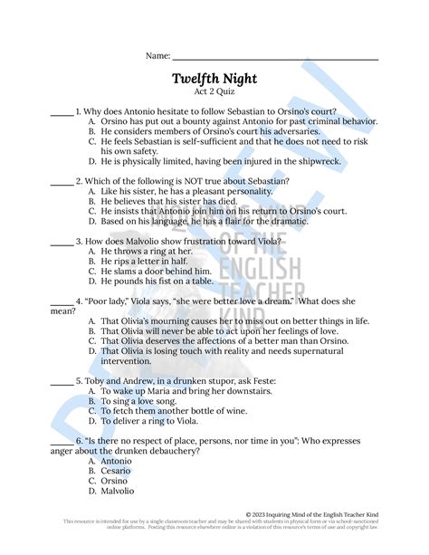 Read Twelfth Night Questions And Answer Key Kindle Editon