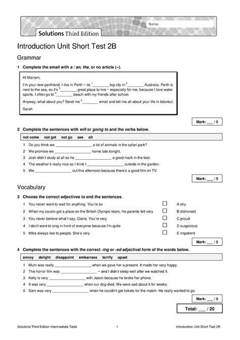 Read Short Test 2b Solutions Unit 5 PDF