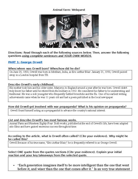 Read animal farm webquest answer key Epub